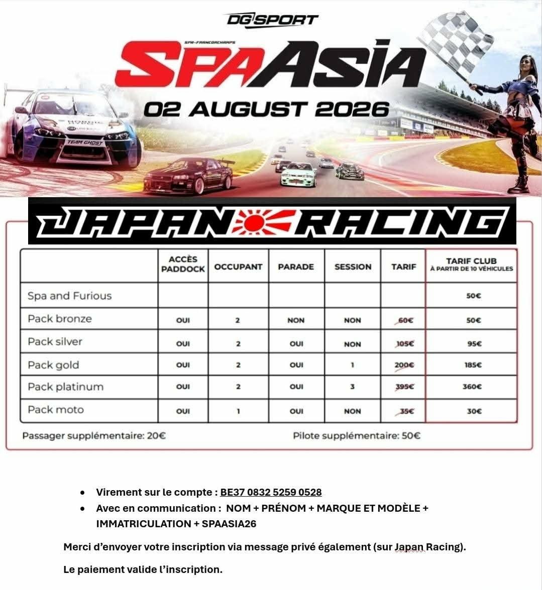 Dès la création en 2018 nous sommes présent aux événements 100% dédiés aux voitures Japonaises en France mais aussi en Belgique, Luxembourg, Allemagne et Hollande.